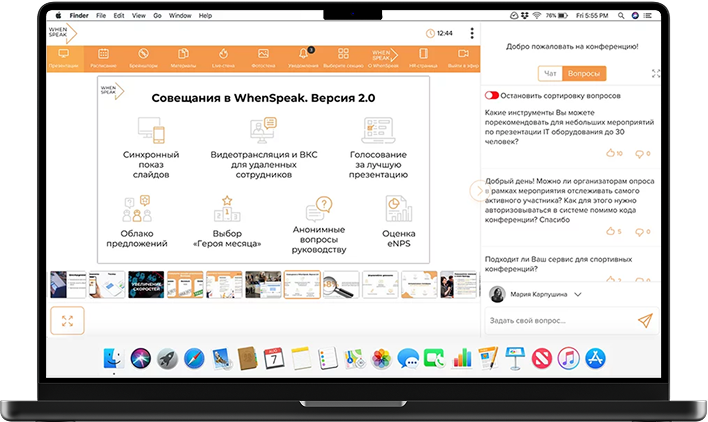 Платформа WhenSpeak предоставляет все необходимые инструменты, с помощью которых можно сделать презентацию в онлайн-формате.
