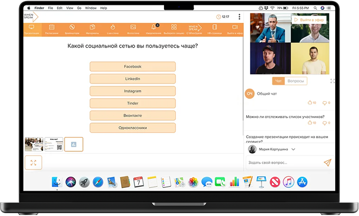 До 15 спикеров в прямом эфире Общайтесь без границ — WhenSpeak соединяет пользователей из разных стран мира.